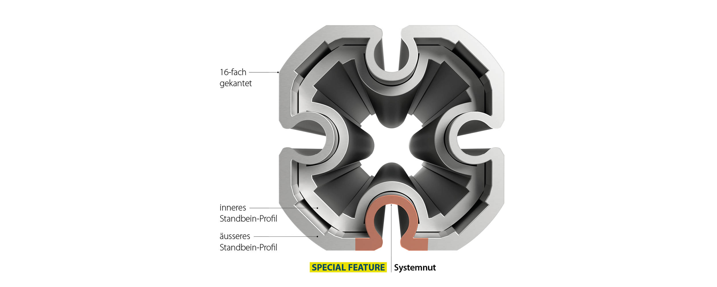 Zum Vergleich: Bei konventionellen Profilkonstruktionen entspricht dies einem Durchmesser von 83 mm bzw. 65 mm.