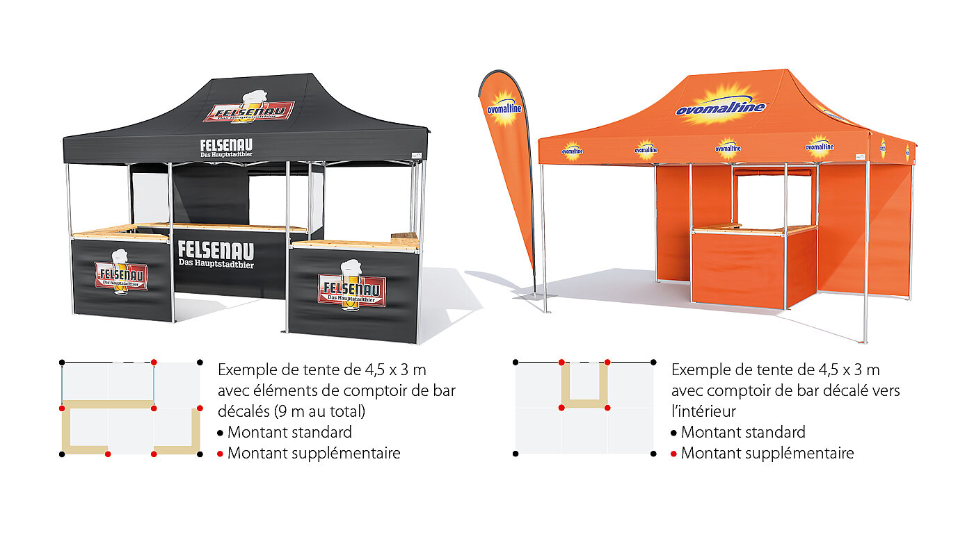 Pro‑Tent propose un vaste choix d’accessoires qui permettent de concevoir la tente idéale pour chaque occasion : avec nos parois latérales, avant-toits, gouttières, systèmes d’éclairage ou encore comptoirs de bar à la finition soignée, crée en un tournemain un stand de boissons, un espace de retrait de marchandises ou un point service.